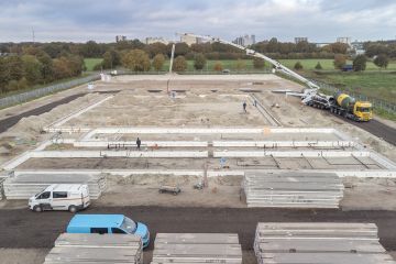 In Emmen zijn we in opdracht van Enexis bezig met de nieuwbouw van een compleet nieuw regiokantoorVorige week hebben we de fundering gestort en afgelopen week zijn de kanaalplaatvloeren gelegd!
